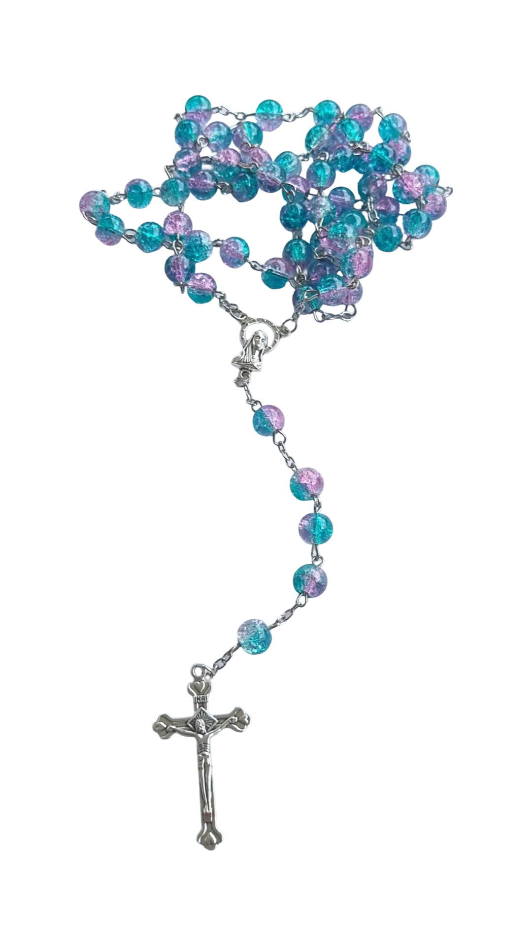 Glass Rosary Crackle Turquoise/Mauve Bead